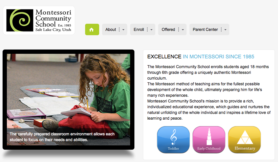 The Montessori Community School, a leading private school in the Salt Lake City valley, needs a modern website which is easy to update and maintain but also connects into their existing web and IT infrastructure, while also embracing the Montessori philosophy. A key requirement is for their community to use it as a real asset- a resource for prospective parents, a connection between the teachers and students via their parents, plus a tool to help maintain a dialog with the alumni. They contacted Tiki Multimedia because of their reputation and relationship with the community.